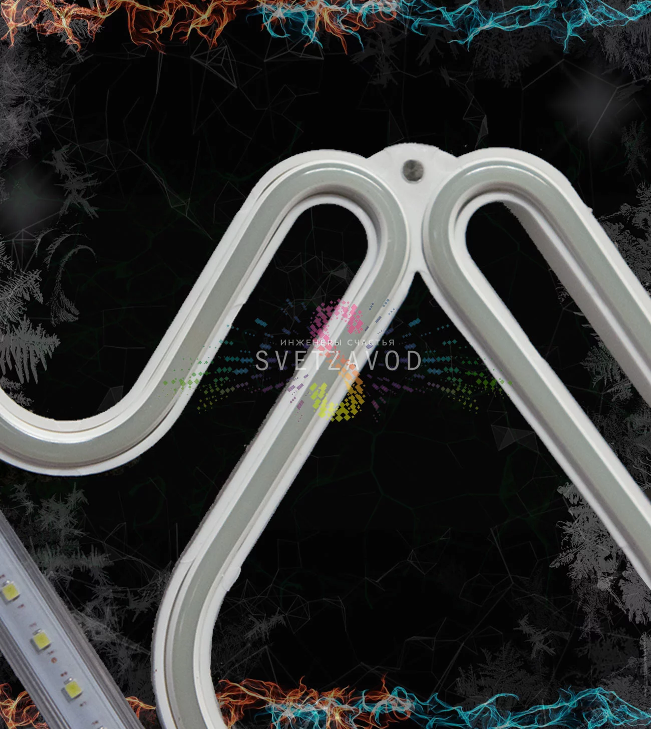 Вся конструкция рассчитана на многолетнюю эксплуатацию в российском климате. Светодиодный неон (гибкий шнур) надежно закреплен в пазах каркаса и защищен от механических воздействий.