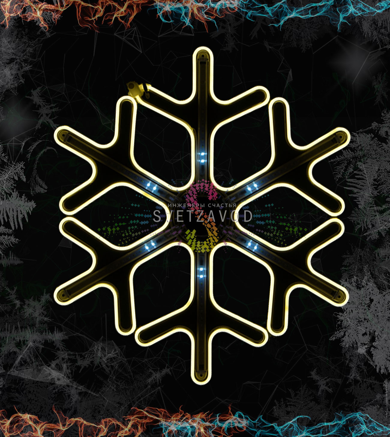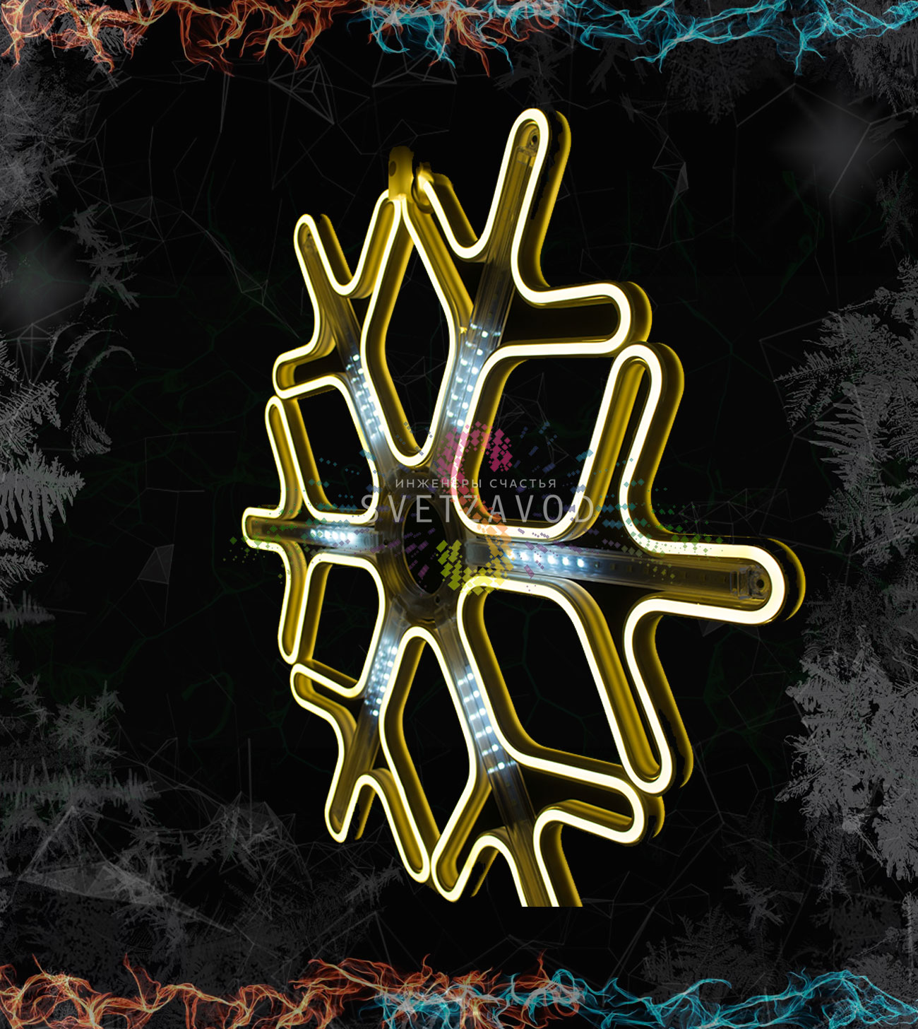 Инновационная светотехника: Светодиодная снежинка создает волшебный эффект тающих сосулек с плавным перетеканием света. Гибкий неон обеспечивает равномерное свечение без темных участков, характерных для традиционных гирлянд. Динамичная подсветка имитирует природное движение снежинок в воздухе.