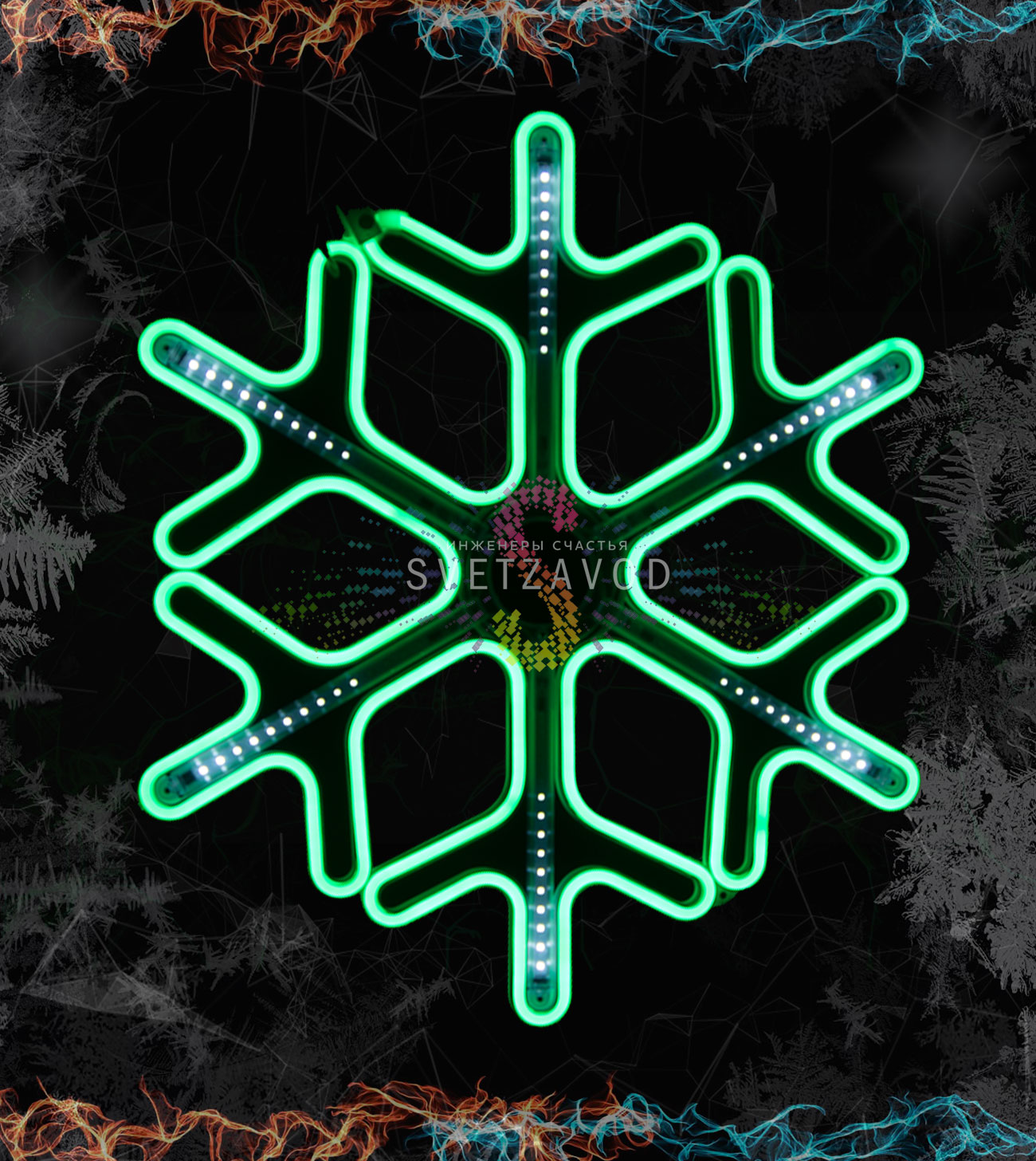 Инновационный дизайн с эффектом тающих сосулек: Наша светодиодная снежинка создает уникальную атмосферу зимней сказки благодаря динамическому свечению с эффектом "стекающих капель". Зеленый неоновый свет мягко переливается, имитируя таяние ледяных кристаллов.