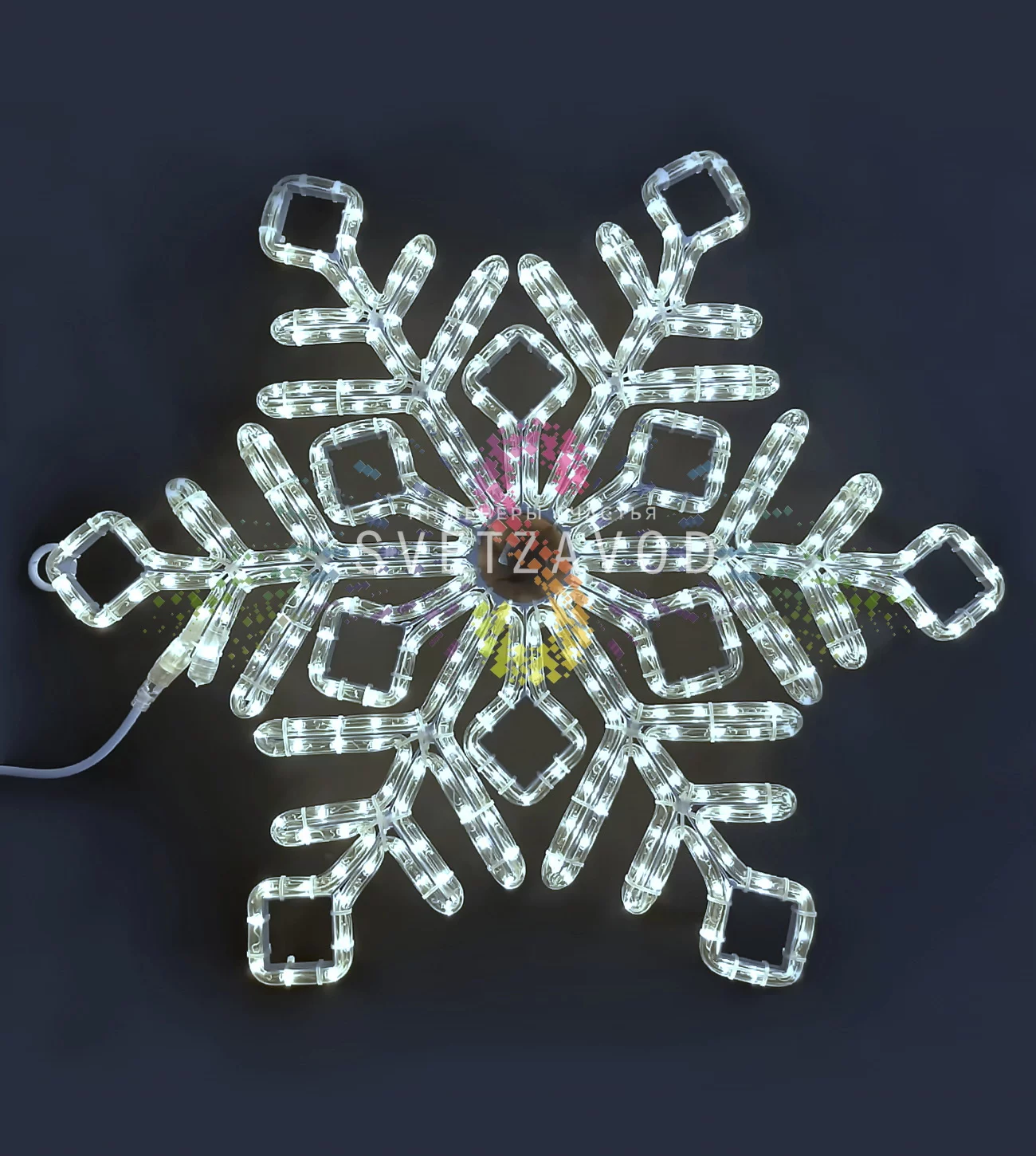Элегантная уличная снежинка с подсветкой одинаково хорошо подходит для декорирования фасадов зданий, частных домов и интерьеров, создавая волшебную новогоднюю атмосферу.