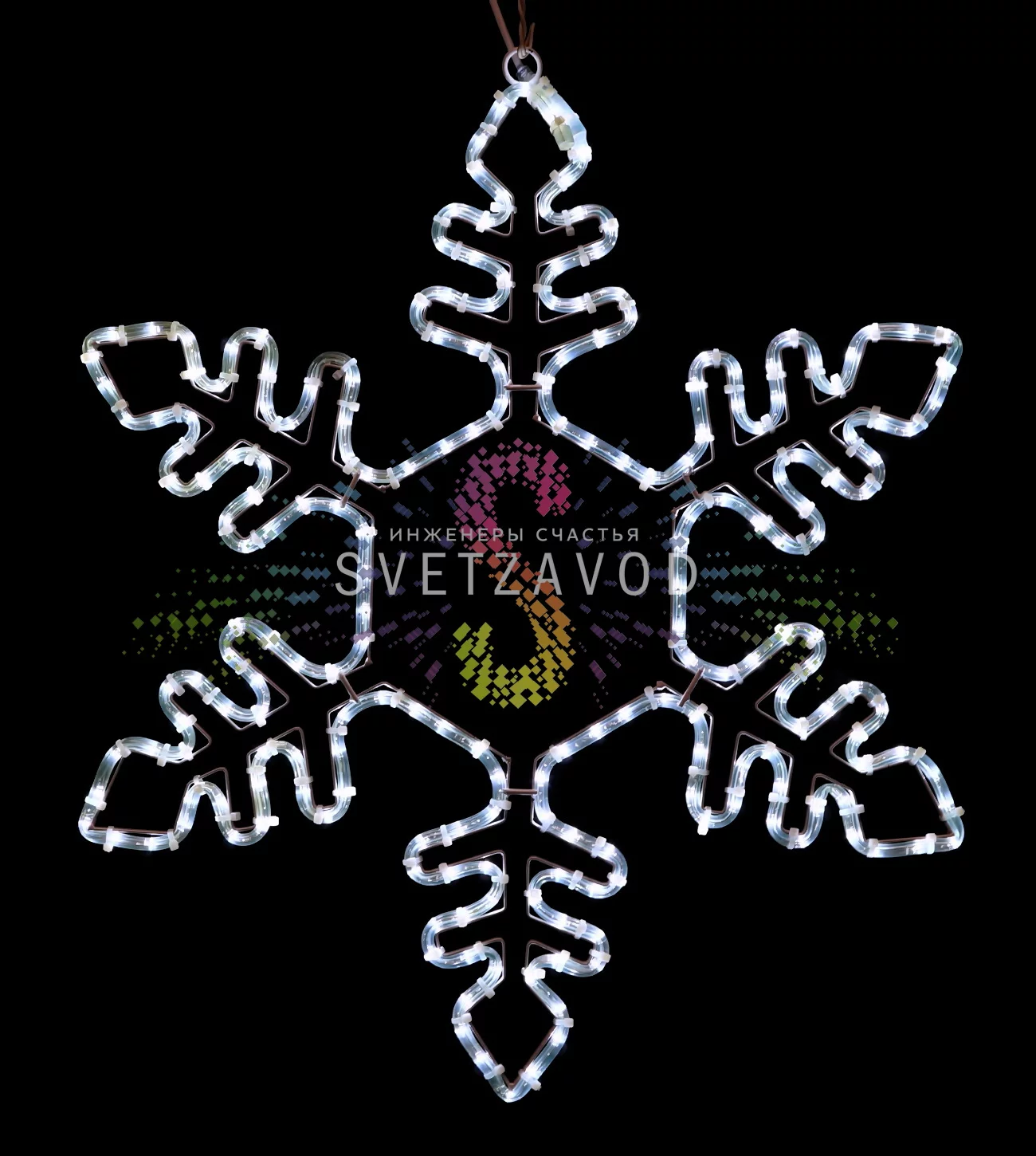 Прочность и долговечность: Каркас снежинки изготовлен из металла, что обеспечивает жесткость формы и устойчивость к ветровым нагрузкам. Светодиодный дюралайт, закрепленный на каркасе, дает равномерное свечение без темных участков. Режим фиксинг означает стабильный свет без мерцания, что снижает утомляемость глаз и подходит для классического оформления.