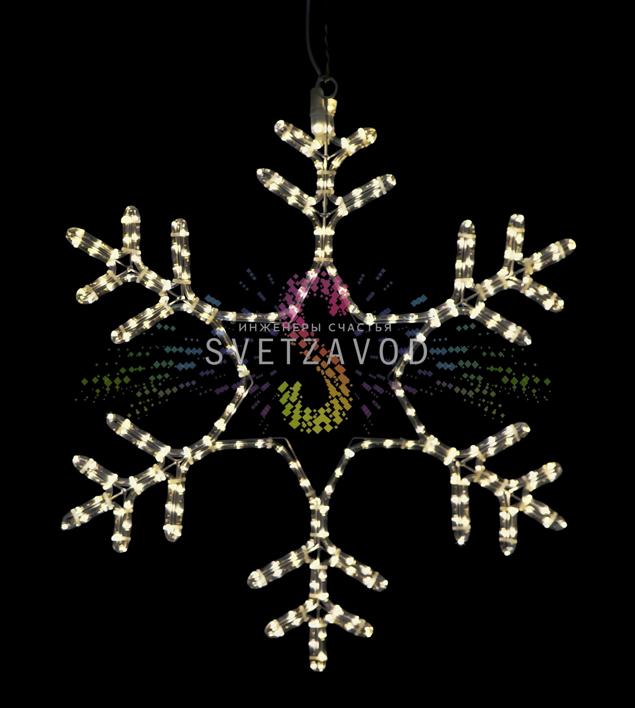 Надежность в каждой детали: Прочный металлический каркас с порошковым покрытием обеспечивает устойчивость к деформациям и коррозии. Светодиодный дюралат гарантирует равномерное свечение по всему контуру снежинки.