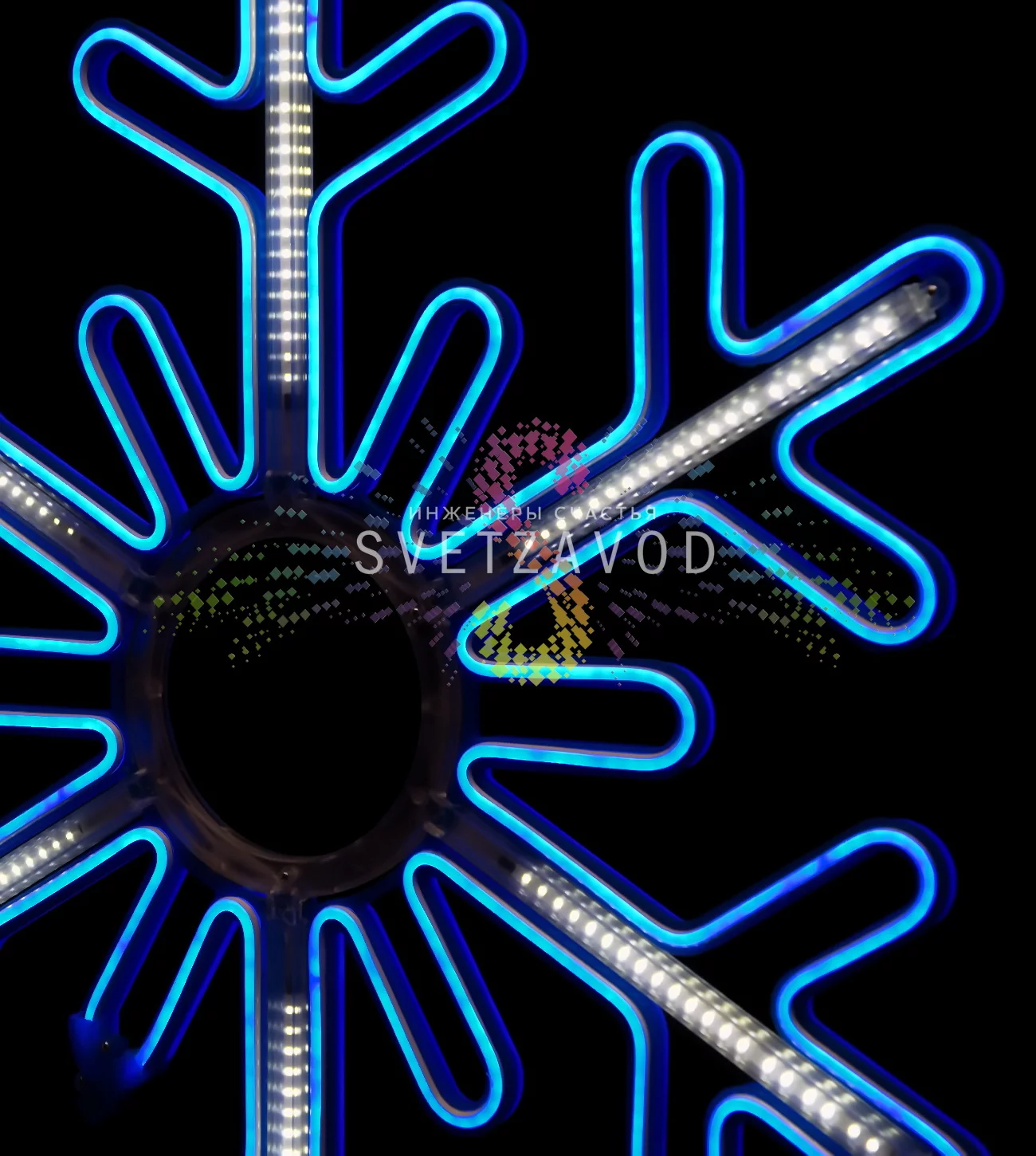 Прочная основа и защита: Каркас снежинки выполнен из жесткого пластика, который сохраняет форму при ветре и перепадах температур от -30°C до +50°C. Класс защиты IP65 означает полную герметичность: фигура не боится пыли и прямых струй воды, что делает её идеальной уличной снежинкой с подсветкой.