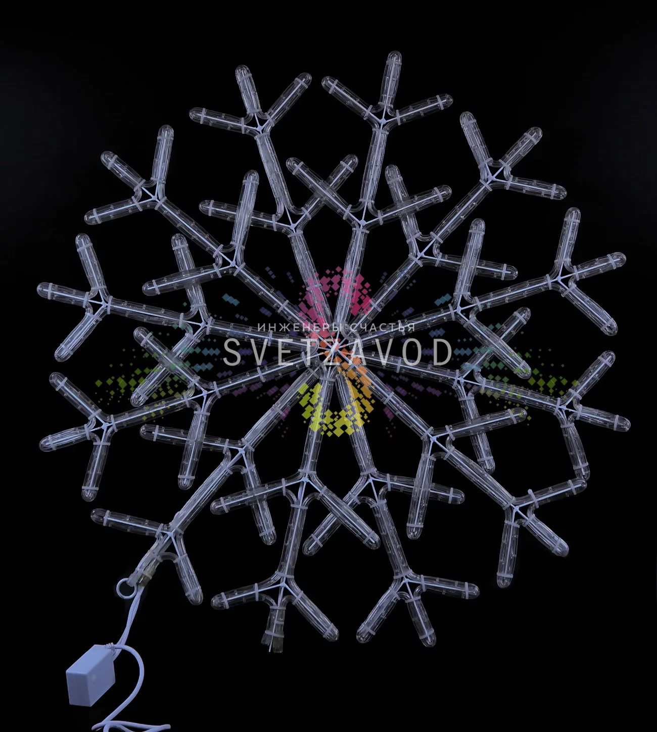 Выгода: При мощности 36 Вт снежинка потребляет минимум электроэнергии, позволяя создавать масштабные инсталляции без опасений за счета. Долгий срок службы светодиодов делает покупку долгосрочным вложением, а не сезонным расходом.