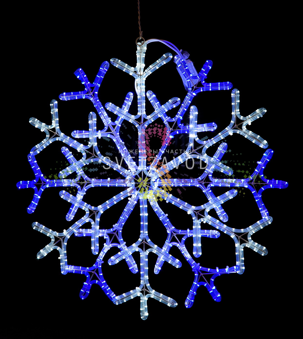 Современная светотехника: Эта светодиодная снежинка сочетает в себе энергоэффективные технологии и праздничную эстетику. Конструкция с двумя цветами (синий и белый) создает динамичное и привлекательное визуальное воздействие, идеально подходящее для новогоднего оформления.