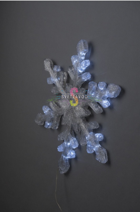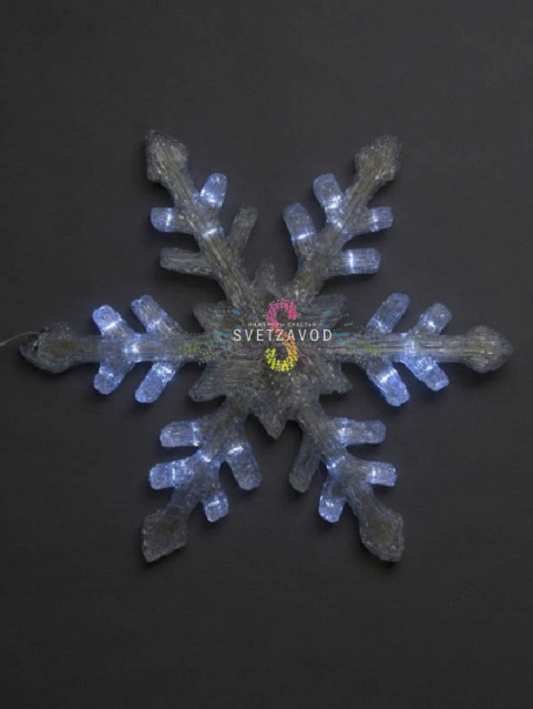 Технологичное решение: Элегантная светодиодная снежинка из акрила диаметром 58 см создает волшебную атмосферу праздника. Модель оснащена контроллером для управления режимами свечения и работает от безопасного напряжения 24В.