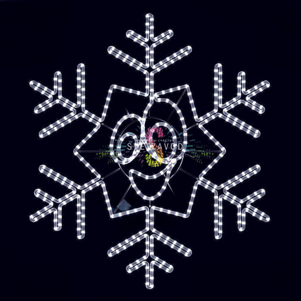 Эта световая фигура диаметром 103 см выполнена в виде стильной снежинки с веселым смайликом, что делает ее особенно привлекательной для создания праздничного настроения.