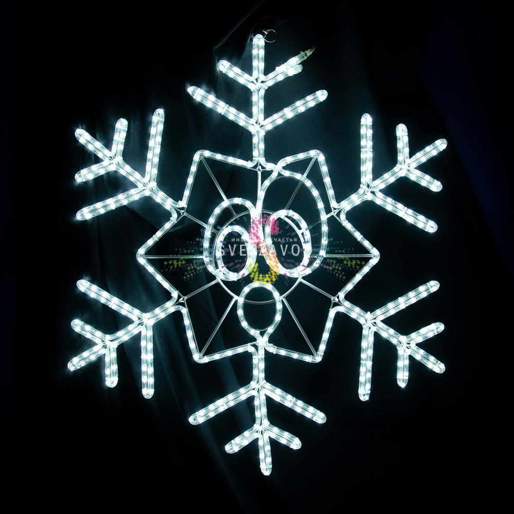 Универсальность применения: Снежинка подходит для украшения различных объектов: от частных владений до коммерческих помещений. Ее можно размещать на стенах, окнах, входных группах, а также использовать в составе сложных световых композиций. Благодаря стандартной вилке для подключения к сети 220В, установка не требует специальных навыков или оборудования.