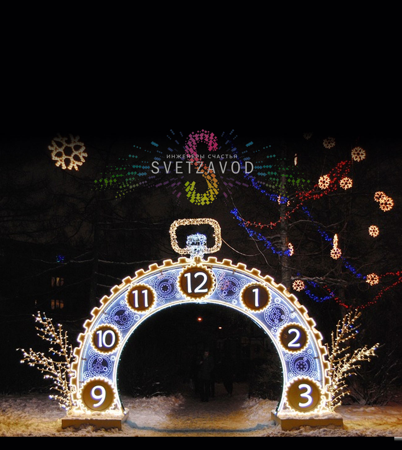 Инновационная 3D-конструкция: Светодиодная арка "Часы" 350х450х35 см - это современная световая фигура 3D, создающая праздничную атмосферу в любое время года. Конструкция с часами и светодиодной подсветкой станет ярким акцентом в городском пространстве, торговом центре или частной усадьбе.