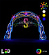 Световой контур создан с использованием качественного дюралайта и гирлянды, излучающих насыщенное мультицветное свечение. Степень защиты IP65 гарантирует полную влагонепроницаемость и защиту от пыли, позволяя использовать арку под дождем и снегом без риска поломки.