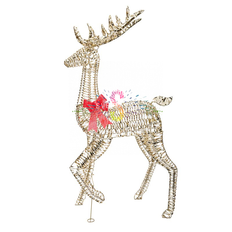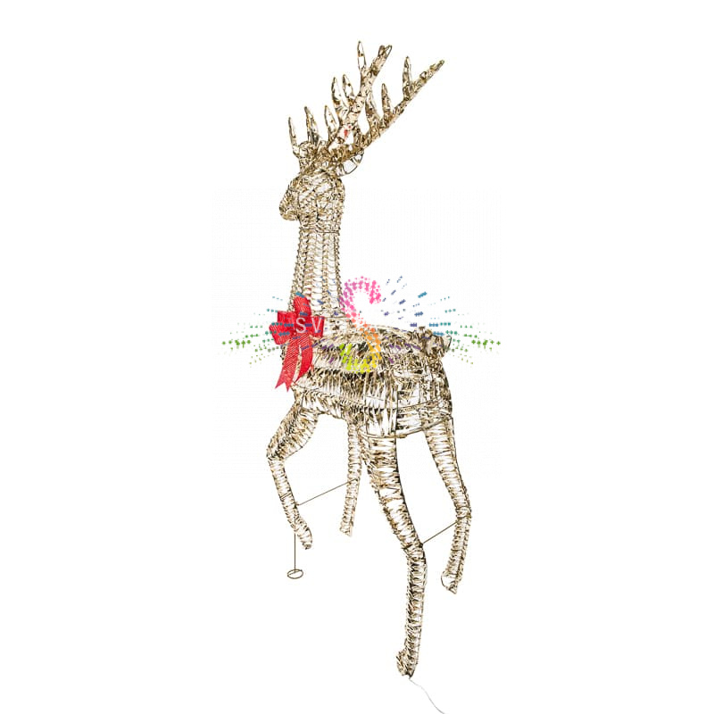 Новогодние фигуры цена которых оправдана их универсальностью, станут центральным элементом декора. Светящийся олень заказать можно для украшения фасадов магазинов, создания праздничных композиций в парках или оформления частных территорий. Габаритные размеры 180х90х27 см делают фигуру заметной, но не громоздкой.