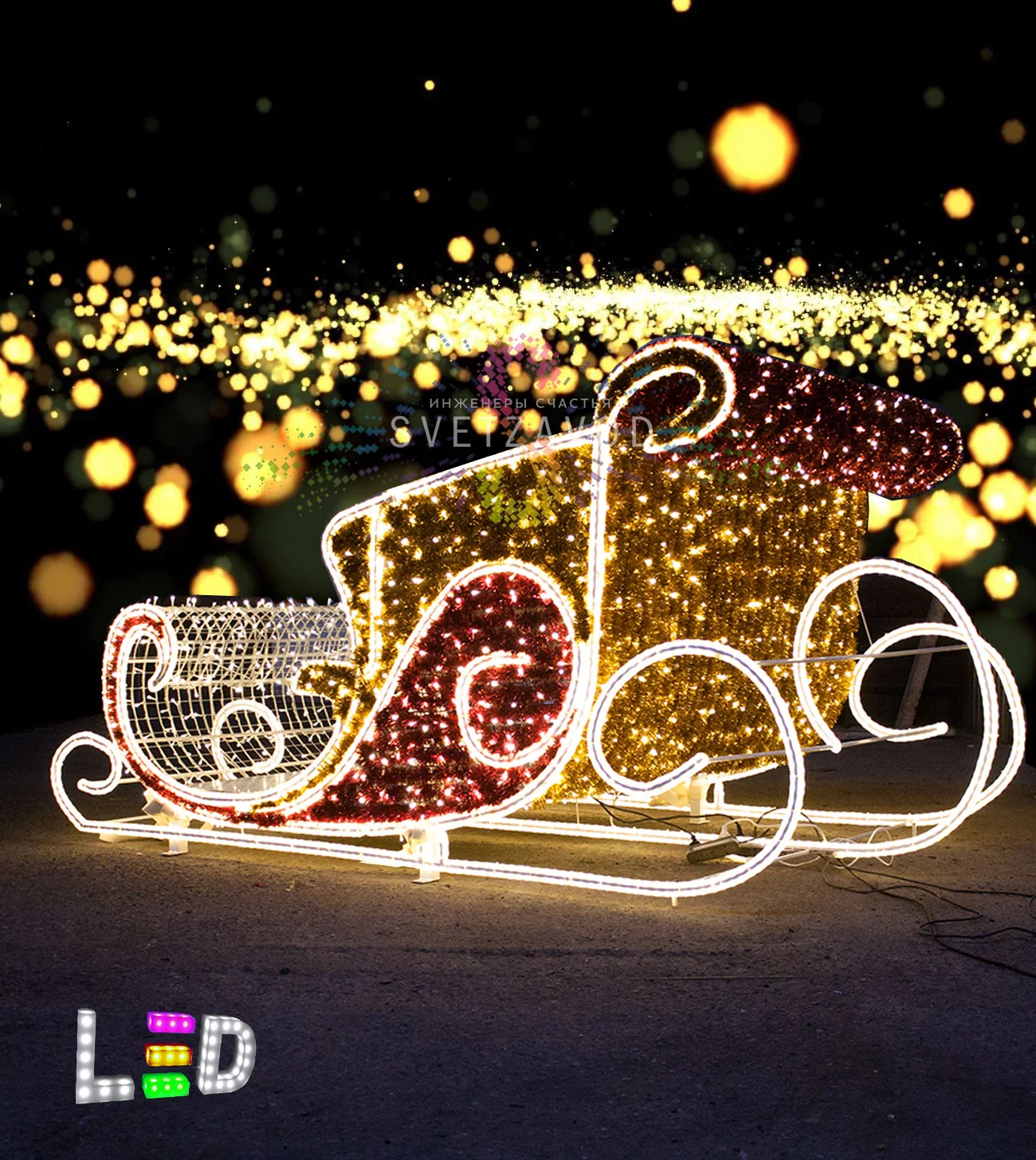 Оформление праздничного пространства требует ярких, запоминающихся акцентов, которые работают круглосуточно и при любой погоде. Готовое решение — объемная светодиодная конструкция «Новогодние сани деда мороза». Это не просто украшение, а полноценный арт-объект, который мгновенно создает атмосферу праздника и привлекает внимание. Купить такие световые фигуры 3D — значит получить готовый инструмент для эффектного декора парков, площадей, торговых центров или частного участка. Конструкция полностью готова к работе: достаточно подключить к сети 220В.