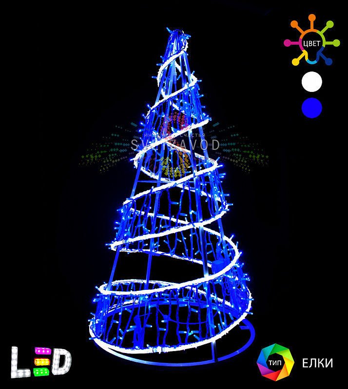 Надежная основа: Каркас ёлки изготовлен из прочной стали с защитным покрытием, что гарантирует устойчивость и защиту от коррозии. Конструкция выдерживает вес всех световых элементов и устойчива к ветровым нагрузкам.