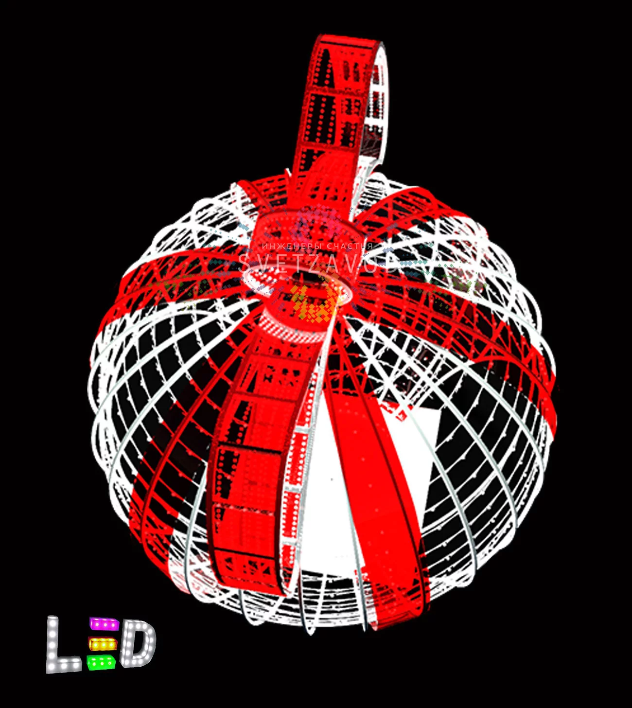 Универсальность применения: Трехмерные световые фигуры — это тренд, который работает в любом масштабе. "Сфера красный бант" создаст праздничное настроение и станет фотозоной в самых разных локациях. Это выгодное вложение, так как одна качественная фигура решает задачу оформления на годы вперед.