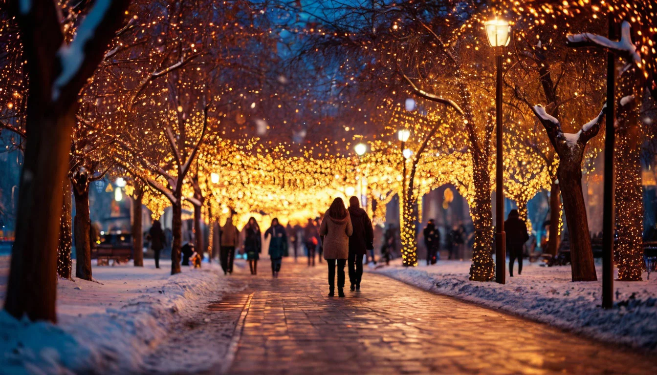 - Светодиодные гирлянды на деревьях, арках и фасадах создают уютную атмосферу.